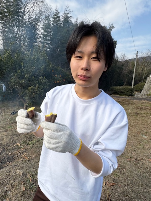 そして作業の合間の休憩時間には、島のもぎたて柑橘類🍊や焼き芋🍠、お菓子🍩を美味しくいただきました!